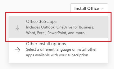 Click on Office 365 apps (this will download all Office 365 software programmes directly to your computer)