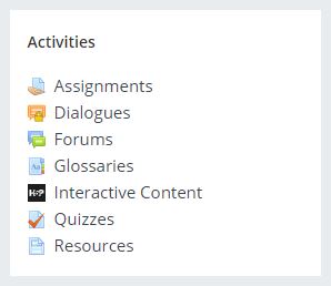 Each course page on PMA will have an Activities box in a pop out menu on the right hand side of the page - this is where students can get a full look/overview into certain activities within the course page.