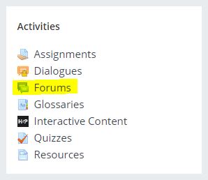 For this example, students can click on Forums and be taken to a full overview of all the forums within the course page:
