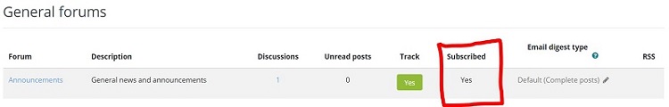 Students can also subsribe/unsubscribe to forums individually - however the main Announcment forums cannot be unsubscribed to (as shown below):
