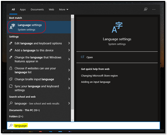 2. Search the keyword Language and select ‘Language Settings’